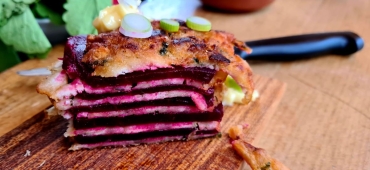 Der erste Arbeitstag neigte sich dem Ende zu. War waren recht flott vorangekommen, und auf Ulli wartete eine anspruchsvolle Anrichtevariante, die sie sich für den Melonenfetasalat ausgedacht, aber noch nie ausprobiert hatte. Nachdem die normale Version fotografiert war, kam die hohe Kunst des Salatwürfels dran. Ulli baute aus Wassermelonen-, Zuckermelonen- und Fetakäsewürfeln einen großen Würfel. Wir wussten nicht, ob er zusammenhalten oder auseinanderfallen würde, doch er hielt und war wunderschön anzusehen. Es wurden tolle Fotos.