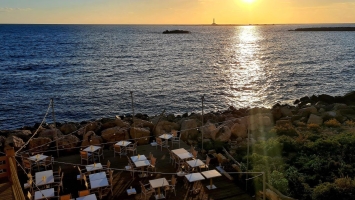 Wir umrundeten die kleine Insel und kamen gerade rechtzeitig zum Strand, die Spiaggia dell Purità, von wo aus man den wunderbaren Sonnenuntergang erleben kann. Wir besuchten zuvor noch die Kirche Chiesa di Santa Maria della Purità mit ihrem wunderschönen Boden aus Majolikafliesen und setzten uns in eine Bar mit Blick aufs Meer. Beim Aperitivo diskutierten wir, woher wir die Information hatten, dass Gallipoli die Hauptstadt der Taralli wäre. Wir wussten es nicht mehr und konnten es auch nicht mehr rekonstruieren, was wir wo missverstanden hätten. Überall anderswo in Apulien, in Lecce, in Bari, haben wir mehr Taralli-Bäckereien gefunden als hier. Bei den Taralli sind wir in Gallipoli nicht so fündig geworden, aber Blick aufs abendliche Meer und der Sundowner waren perfekt.