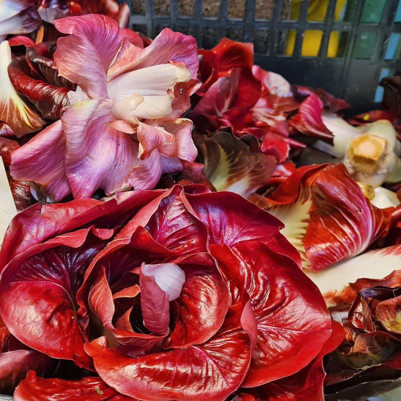 Denn der Radicchio findet seinen perfekten Lebensraum im Nordosten Italiens, wo ein wahrer Kult um dieses Salatgemüse getrieben wird: Die Region Venetien ist einer der größten Erzeuger Italiens mit nicht weniger als fünf IGP-Sorten („Indicazione Geografica Protetta“ = „geschützte geografische Angabe“), die sich auf die Gebiete von Treviso, Verona, Chioggia und Castelfranco verteilen. In der Gemeinde Zero Branco im Veneto, ca. 20 km von Venedig entfernt, wird jedes Jahr Ende Jänner eine Art Festival für den Radicchio Tardivo di Treviso IGP veranstaltet, bei dem sich in Ausstellungen, Verkostungen, Workshops und einem kulturellen Rahmenprogramm alles um den berühmten Radicchio dreht.