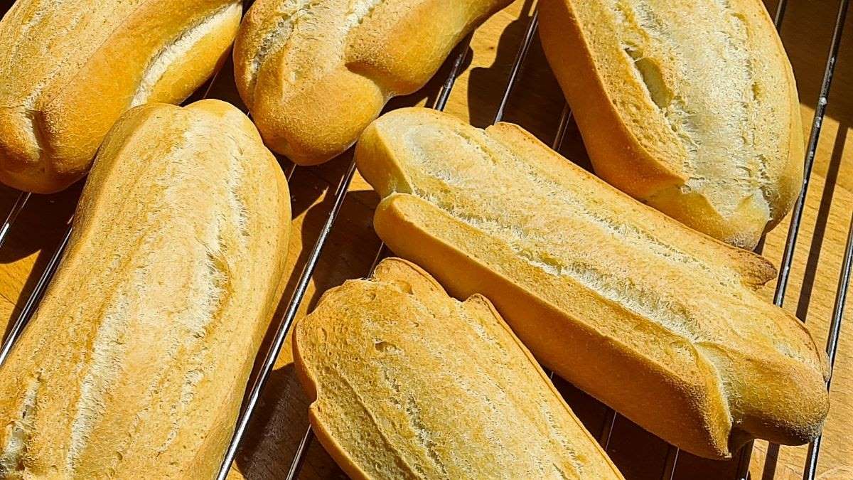 Die Teiglinge auf einem Backblech, idealerweise einem Patisserieblech, anordnen, der Länge nach ca. 1 cm tief einschneiden und in den auf 220°C vorgeheizten Backofen bei Ober/Unterhitze mit kräftigem Schwaden einschießen. Nach 8 Minuten auf 200°C reduzieren und weitere 12 Minuten fertig backen. Aus dem Ofen holen und mit Wasser besprühen, wenn sie ein wenig glänzen sollen.