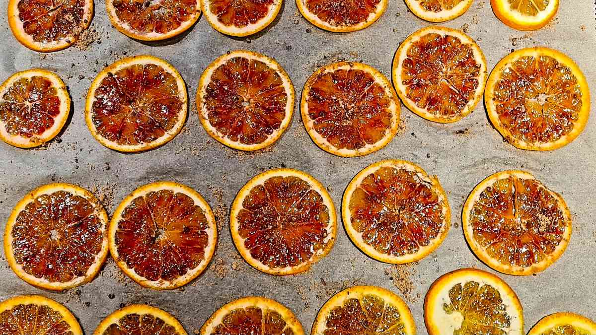 Zitrusscheiben selbst dörren ist weniger Arbeits- als Zeitaufwand. Da letzteren der Backofen abnimmt, machen wir uns gerne die geringe Arbeit und werden mit einer nach Zitrusfrüchten duftenden Wohnung belohnt. Wir verwenden die fertigen Scheiben als Dekoration für Getränke, insbesondere für Aperitife und Cocktails, und für Torten und andere Süßspeisen.