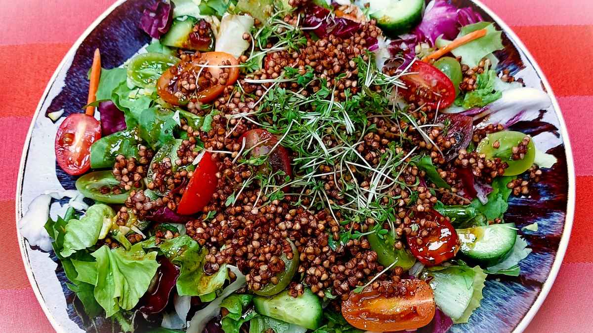 Wir mögen es immer, wenn ein Salat mit knusprigen Zutaten wie gerösteten Brotstücken oder Nüssen verfeinert wird, damit eine zusätzliche Textur das Geschmackserlebnis bereichert. Unlängst haben wir eine für uns neue Variante von „Crunch“ am Salat ausprobiert: Buchweizen in einer neuen, knusprigen Variante, ganz passend zur Jahreszeit als Topping auf einem bunten Herbstsalat.