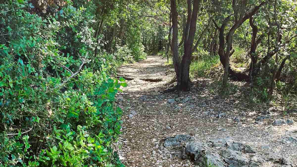 Der Pfad ist mit mediterraner Macchia und Steineichen, Hainbuchen, Sträuchern und duftenden Kräutern gesäumt, auch einige seltenere Pflanzen wie die Terpentinpistazie kann man hier finden. Begleitet wird der Spaziergang im Sommer vom lauten Konzert der Zikaden, die sich jedoch nur ungern zeigen. Hin und zurück dauert der Weg eine gute Stunde, aber man soll sich Zeit nehmen, die Ausblicke und die Details in der Natur zu genießen. Die Aussichtspunkte wurden einst vom k.u.k.-Militär angelegt, um herannahende feindliche Schiffe vor Triest rechtzeitig aufzuspüren. Später wurden sie von der deutschen Wehrmacht genützt und zu Gefechtsständen ausgebaut. Heute werden diese Relikte aus schlimmen Zeiten allmählich von der Natur überwuchert und versteckt. Einige können noch begegangen bzw. besichtigt werden, ein unpoetischer Kontrast zum Dichterweg.