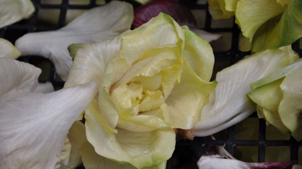 Im Sommer wird die sogenannte Mutterpflanze angebaut, die wenig spektakulär auf den Feldern wächst. Im Herbst wird sie nach dem ersten Raureif mit der Wurzel geerntet, speziell zugeschnitten und kalt gelagert. Dann werden die Pflanzen gruppenweise wieder aktiviert, indem sie in einem dunklen Raum mit Wärme zum Treiben gebracht werden. Die Dunkelheit verhindert, dass die Pflanzen zu viel Chlorophyll entwickeln, die die Blätter bitter macht. In diesen zehn bis vierzehn Tagen entwickeln die Pflanzen rosenblütenähnliche Köpfchen, die nach der Ernte noch einmal von den äußeren unansehnlichen Blättern befreit und gewaschen werden.