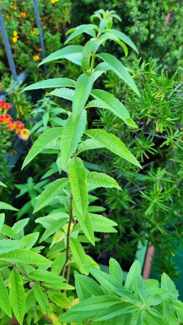 Auf unserer Terrasse in Wien scheint sich die Zitronenverbene in der Mittagssonne sehr wohl zu fühlen. Ihr Duft ist betörend: pures Zitronenaroma, nicht umsonst heißt sie so! Wir kennen dieses Eisenkrautgewächs auch unter dem französischen Namen Verveine. Die Franzosen und vor allem die Französinnen trinken gerne einen Tee aus getrockneten Blättern zur Verdauung nach dem Essen.
