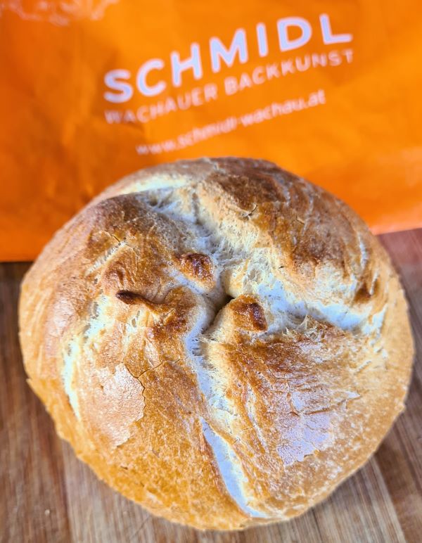 Die Kruste war sehr knusprig und glich optisch dem Original. Die Krume war weich, locker und zart, aber etwas grobporiger und wilder als die Schmidl‘schen Laberln. Die Farbe gefiel uns sehr gut und entsprach dem Original. Wir behaupten nun, dass dieses Rezept unsere vorläufige Interpretation der Wachauer Laberln darstellt. Einen Versuch werden wir noch machen, vielleicht an kühleren Tagen im Herbst, und werden mit ein ganz klein wenig Hefezugabe den Teig anreichern, um eine feinere und regelmäßigere Porung zu erzielen. Das Familiengeheimnis werden und wollen wir nicht knacken, davor haben wir angemessen viel Respekt.