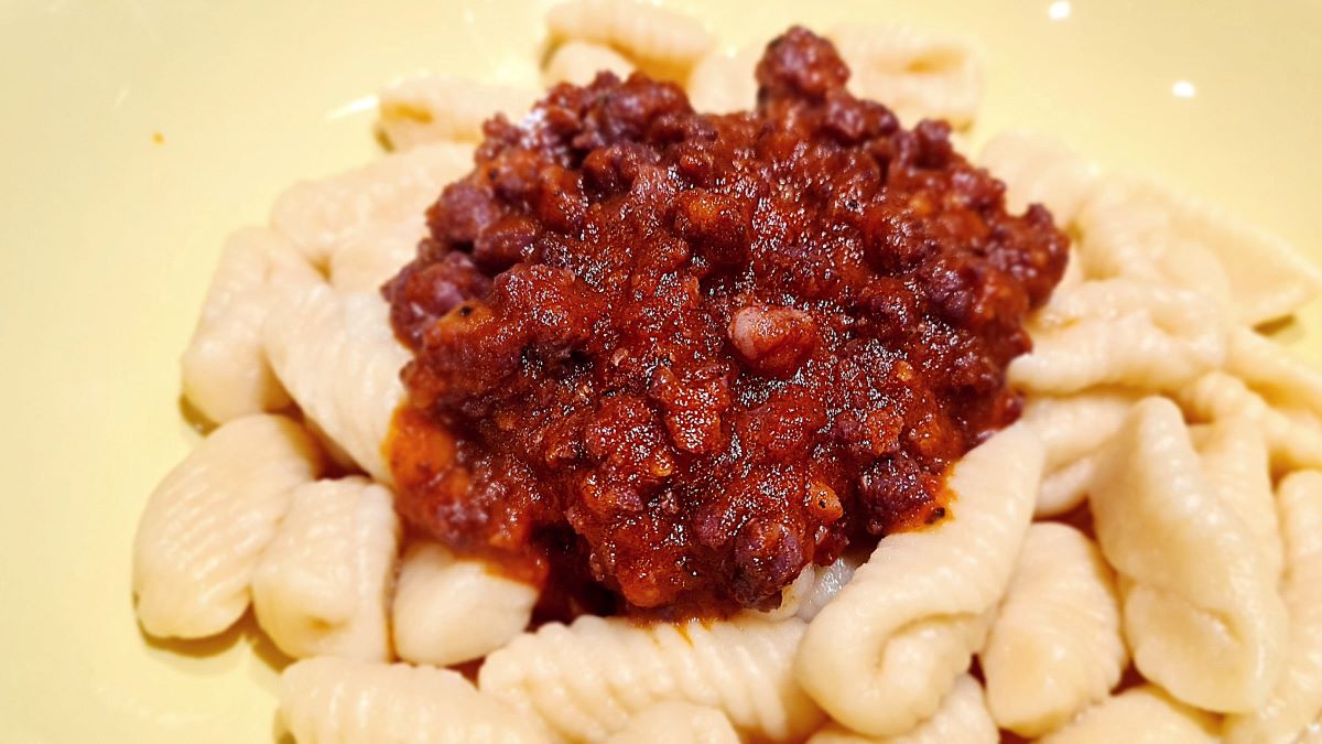 Das Wurstbrät der Salsicce aus der Haut holen und zerkleinern, die Haut entsorgen. In einer beschichteten Bratpfanne das Brät anbraten, wenn das Fett austritt, ein paar Minuten weiterrösten, dann die Hitze etwas reduzieren und Zwiebel und Knoblauchzehe hinzufügen, mitbraten, und etwas später das Tomatenmark dazu mischen. Mit Rotwein ablöschen und einkochen lassen. Passierte Tomaten und etwas Wasser dazugeben und zugedeckt 1 Stunde köcheln lassen. Mit Salz, Pfeffer und Olivenöl abschmecken.