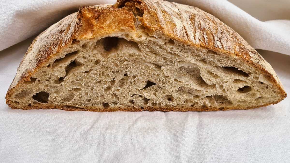 Der Vorteil dieses Mehls T1 ist, dass durch den höheren Schalenanteil mehr Mineralien im Mehl enthalten sind, was es geschmacklich etwas kräftiger als Weißmehl macht, ohne dass ein dunkles Brot entsteht. Es nimmt mehr Wasser auf, wodurch das Brot saftiger wird und länger haltbar ist. Für helle Brote mit langer Reifezeit ist es also ein ideales Mehl. Und so haben wir unser Rezept für ein italienisches Landbrot mit Lievito Madre, dem festen italienischen Sauerteig, entwickelt.