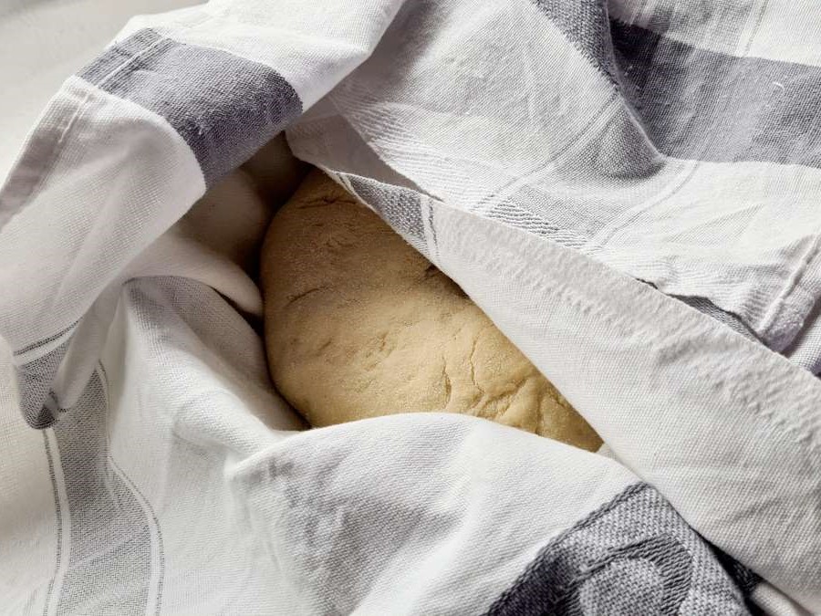 Abgedeckt 12 – 14 Stunden bei Zimmertemperatur gehen lassen, bei uns am liebsten über Nacht. Das Volumen sollte sich in dieser Zeit verdoppelt haben.