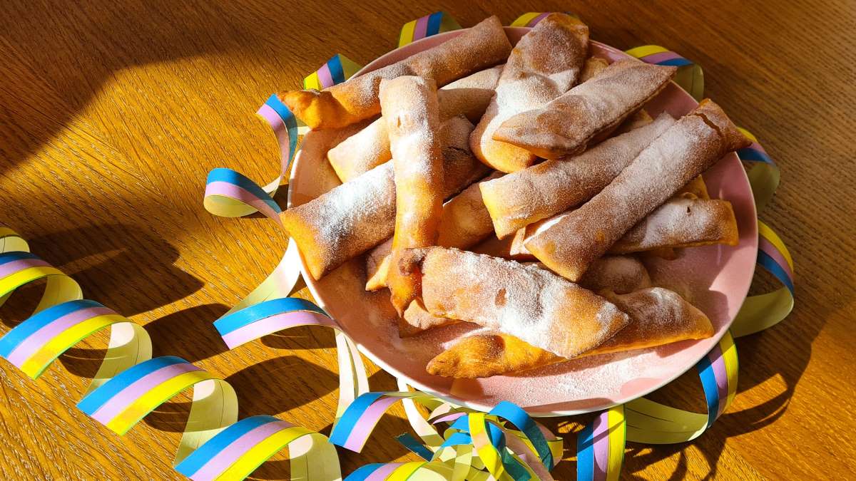 In Friaul findet man zur Karnevalszeit in jeder Bäckerei und Pasticceria die typischen Karnevalsgebäck-Sorten wie Krapfen, Crostoli und Fritole. Letztere sind frittierte luftige Bällchen mit Rosinen und Pinienkernen, die manchmal auch mit Cremen gefüllt sind. Die Krapfen sind österreichischen Ursprungs, sind aber kleiner. Crostoli sind süße gebackene Teigstreifen, die wir uns heute vornehmen.