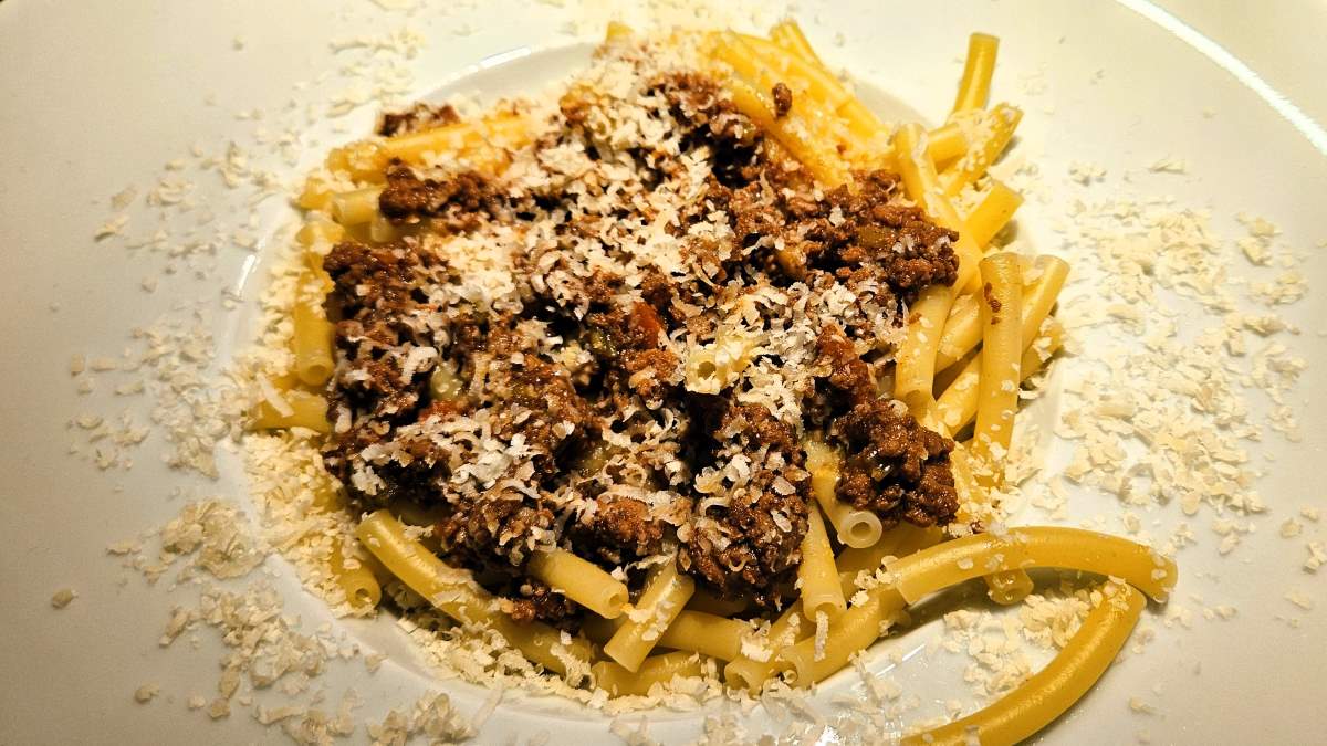 Einmal im Jahr oder zu „heiligen Zeiten“ machen wir eine aufwändige Variante des italienischen Fleischsugos aus Bologna in einer größeren Menge, die wir einrexen und so übers Jahr als Vorrat haben. Warum wir uns die sechs bis acht Stunden Arbeits- und Kochzeit antun? Wegen des unübertrefflichen Geschmacks, der eben aus der langen Frittier- und Schmorzeit resultiert.
