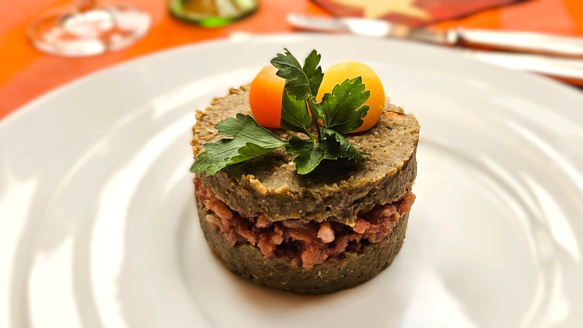 Rund um Silvester genießen wir die deftige italienische Wurst Cotechino bzw. den Musetto, die friaulische Variante. Üblich ist die Wurst ein Hauptgericht, das traditionell mit Linsen serviert wird, die für Geldsegen im neuen Jahr sorgen sollen. Zum weihnachtlichen Familienessen haben wir die Wurst in einer Vorspeise verarbeitet. Der Fleischanteil war geringer und die Portion als Entrée perfekt.