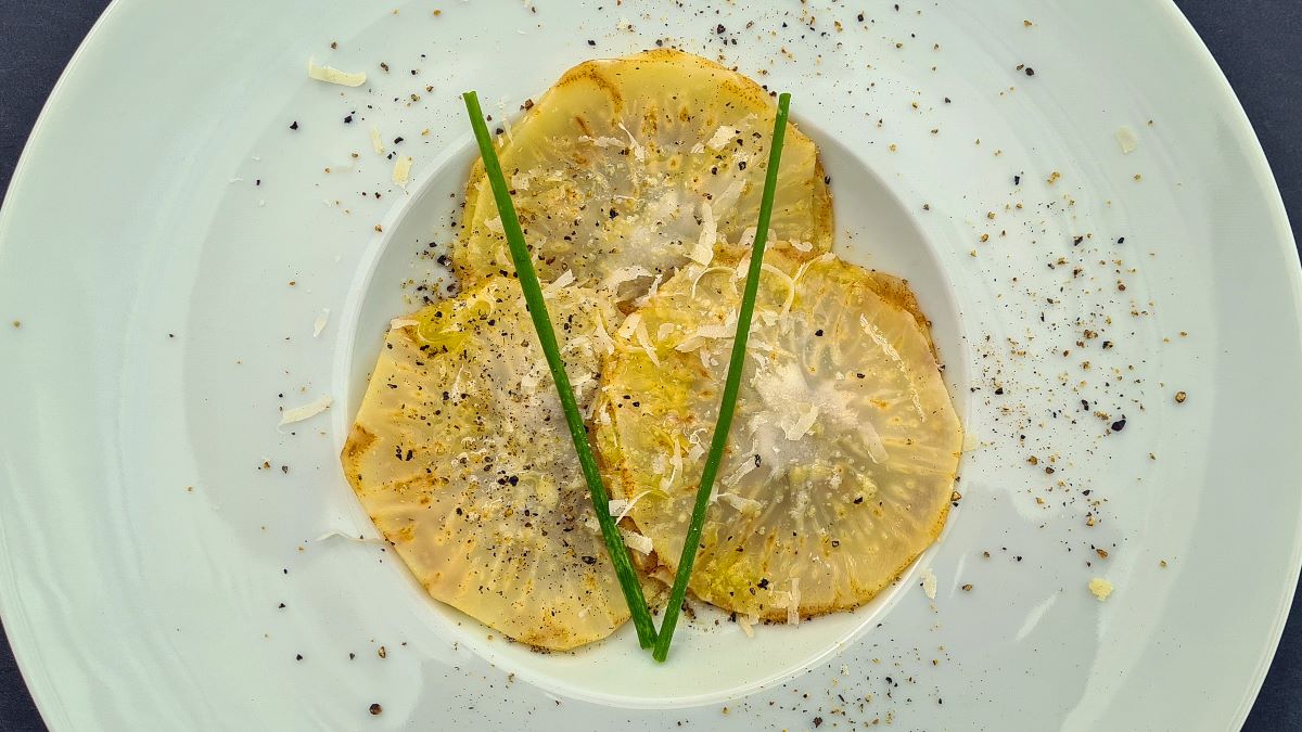 Wir haben eine Variante von großen Ravioli entwickelt, die ohne Teig auskommen und nur mit dünnen Scheiben von der Sellerieknolle zusammengesetzt werden. Voraussetzung für dieses köstliche Rezept ist ein Dampfgarer, in dem zuerst die Zellerscheiben gedämpft und danach die fertig zusammengebauten Ravioloni nochmals erwärmt werden.